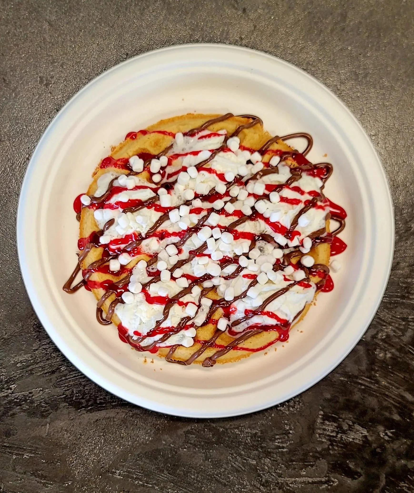 Topping: Nutella, Strawberry Syrup, Whip Cream, Mini Marshmallows